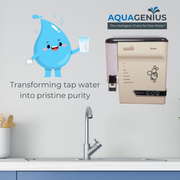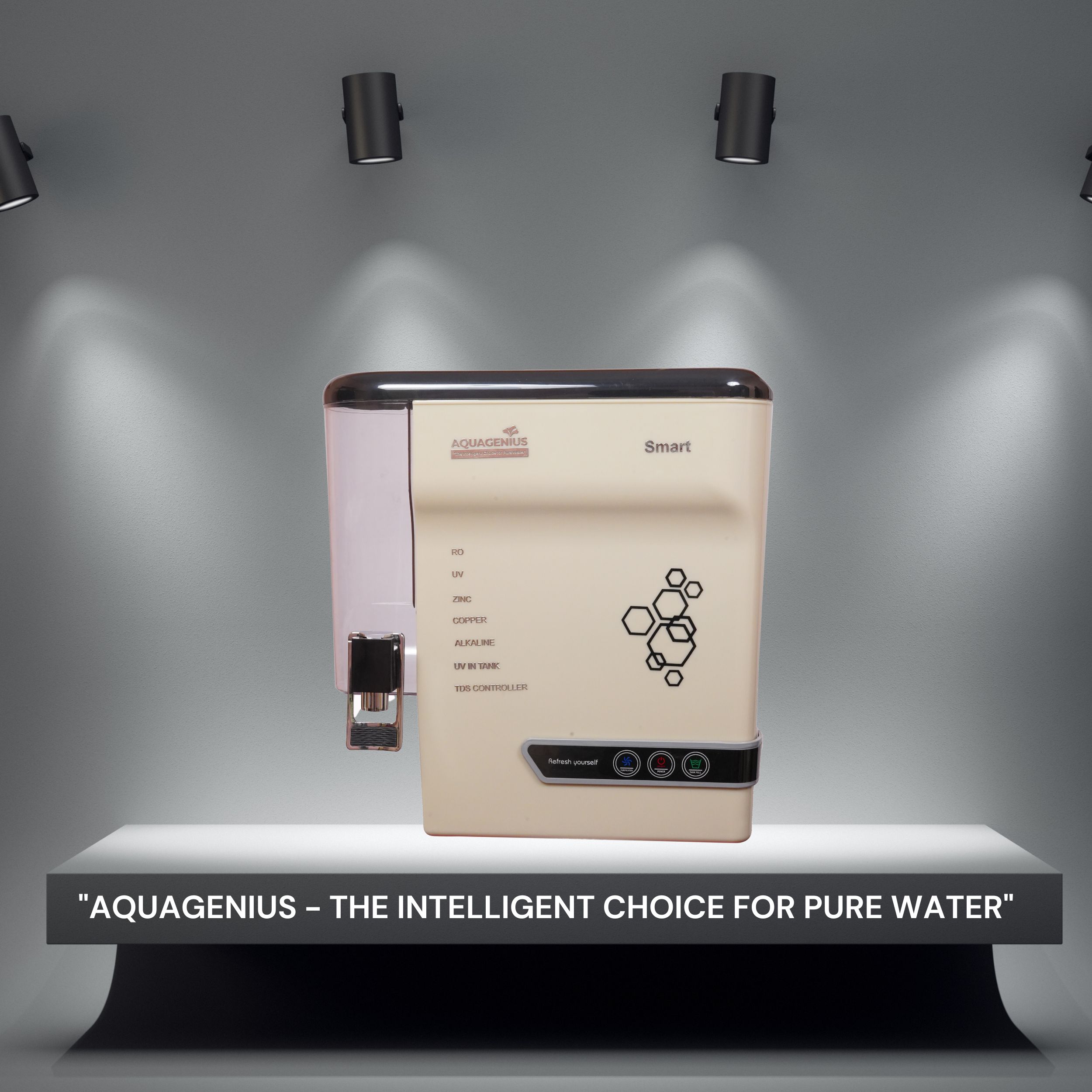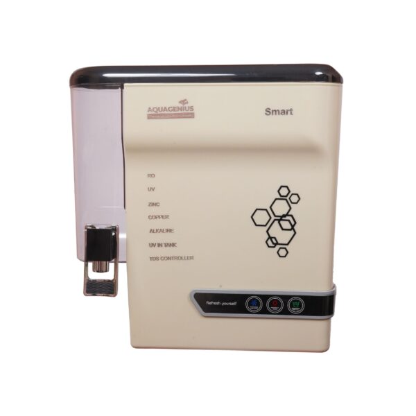 Be the first to review “AQUAGENIUS – Smart LED RO Water Purifier – RO + UV + Zinc Copper Alkaline + TDS Controller | 15 LPH Output | 10L Storage – Gold”