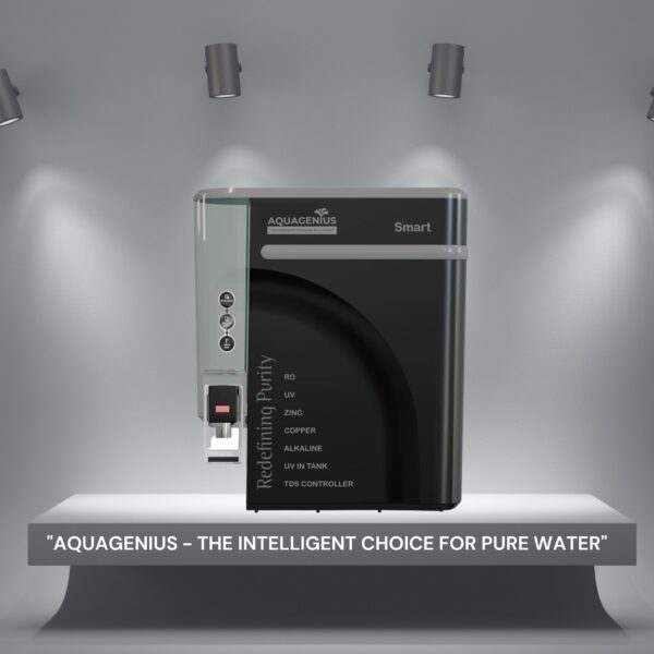 Be the first to review “AQUAGENIUS – Smart RO Water Purifier – RO + UV + Zinc Copper Alkaline + TDS Controller | 15 LPH Output | 10L Storage – Black”