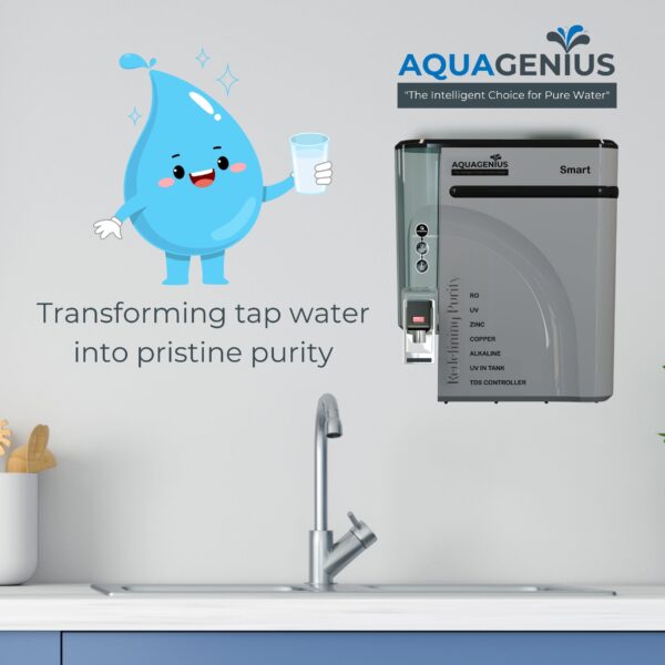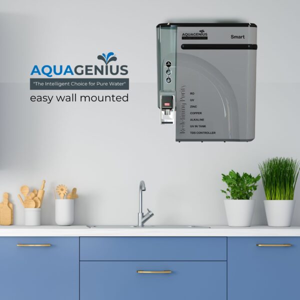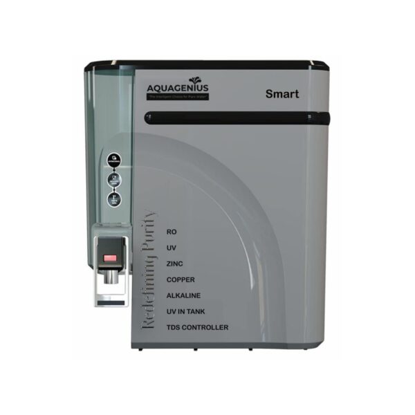 Be the first to review “AQUAGENIUS – Smart RO Water Purifier – RO + UV + Zinc Copper Alkaline + TDS Controller | 15 LPH Output | 10L Storage – Grey”